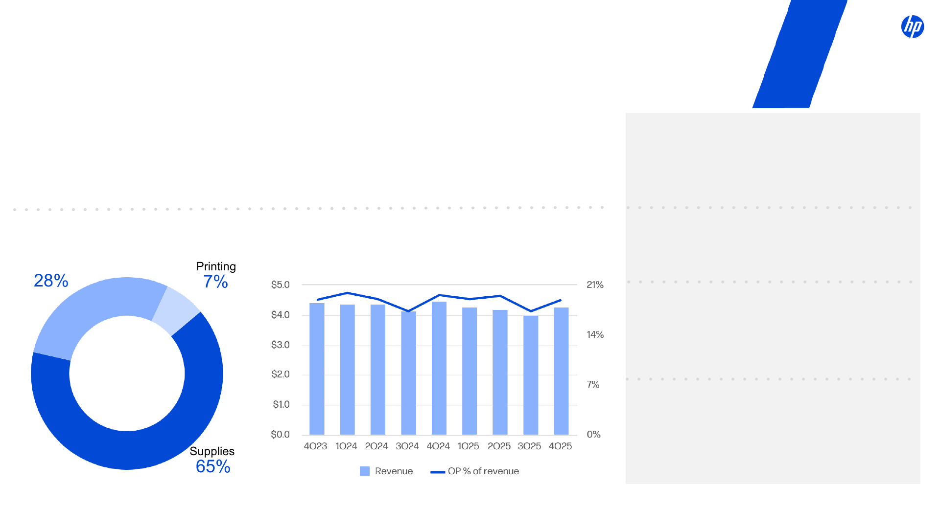 - Personal Systems = 70% | Printing = 30%