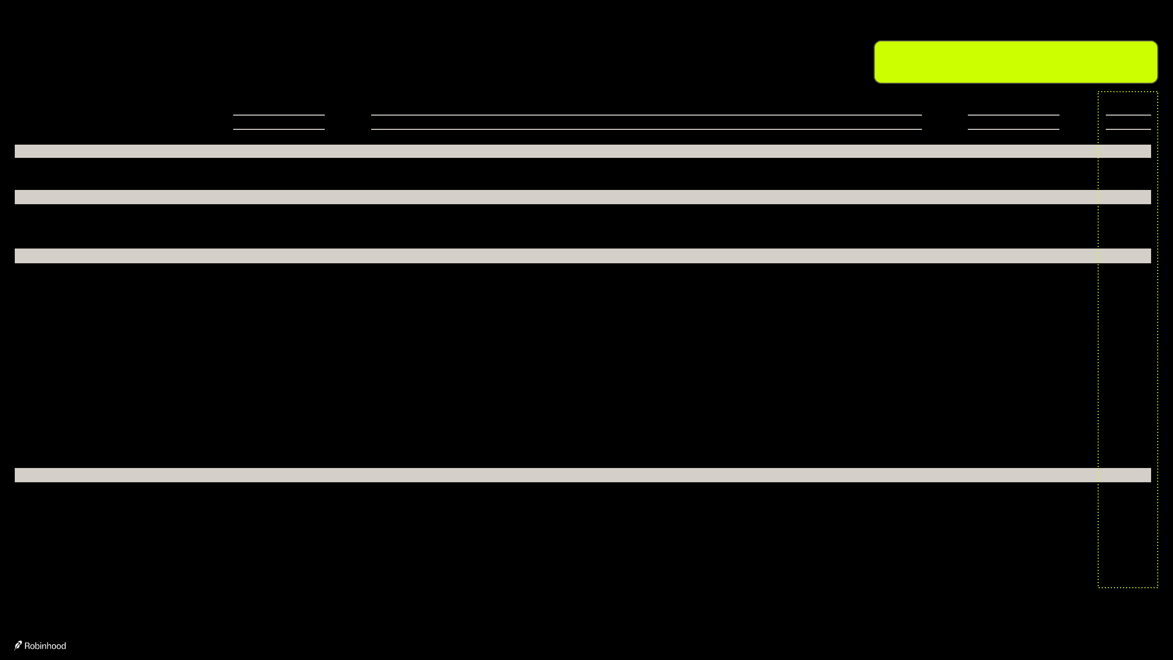 "Robinhood" and the Robinhood feather logo are registered trademarks of Robinhood Markets, Inc. All other names are trademarks and/or registered trademarks of their respective owners.