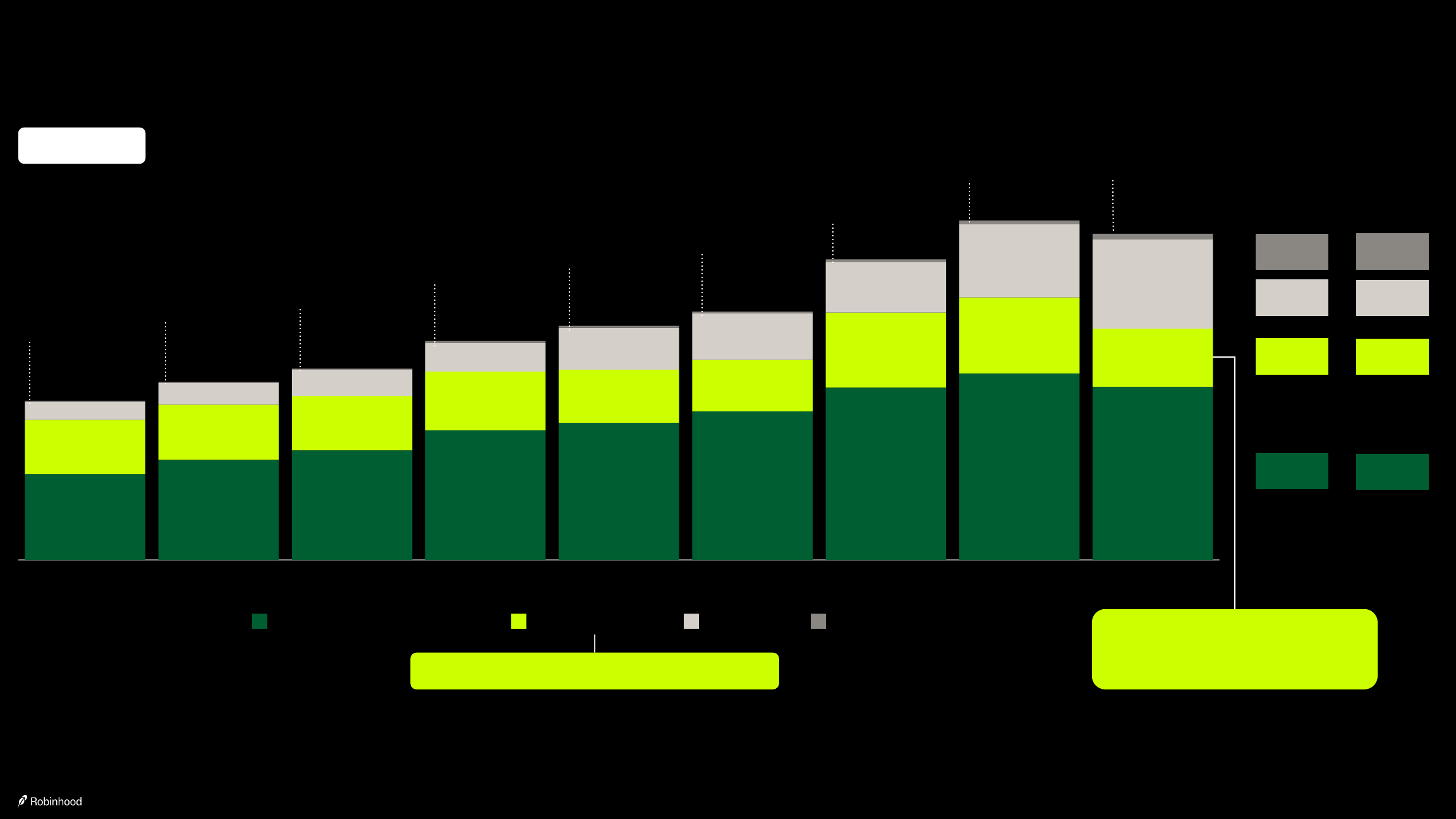 Robinhood Gold Subscribers (in millions) | +1.5M year-over-year | +300k sequential
