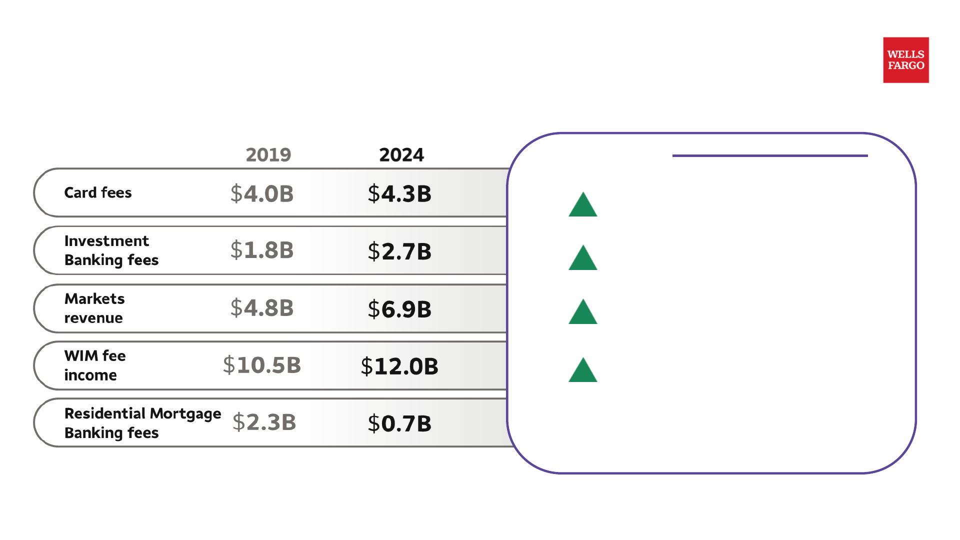 | WIM fee income | $10.5B | $12.0B | ▲ 5% – Reduced attrition through improved offerings and advisor experience |